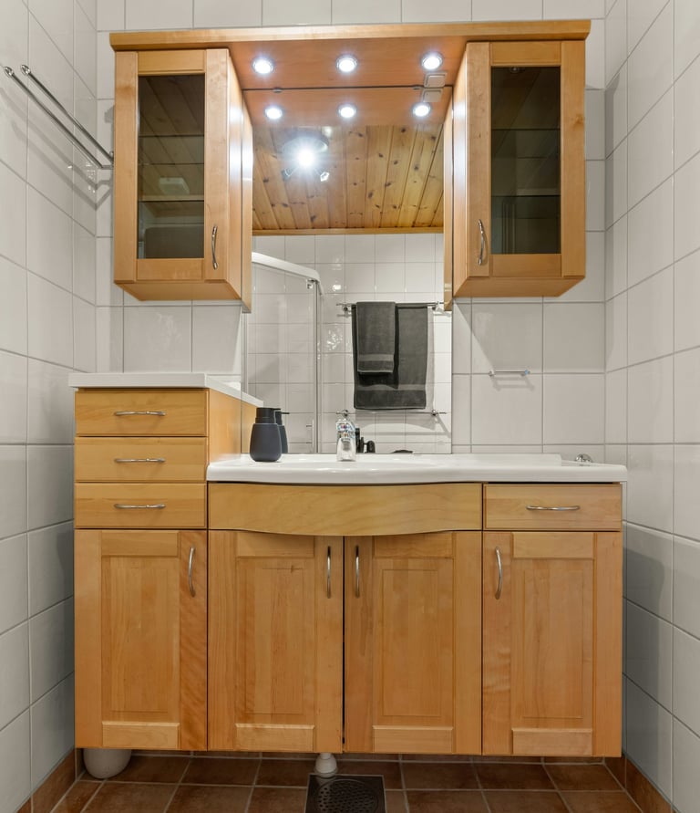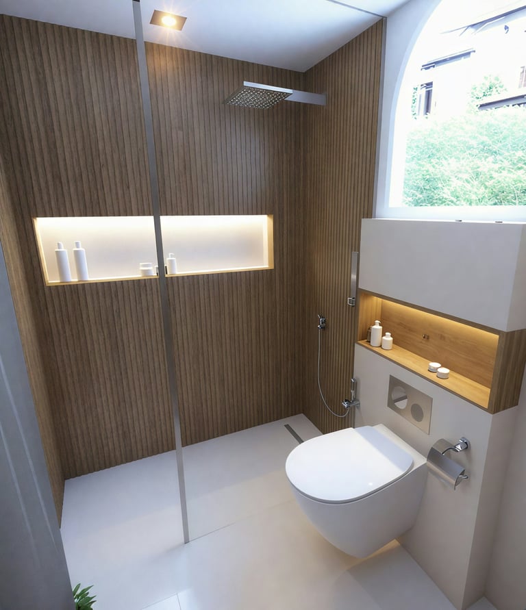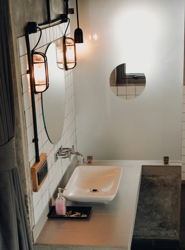 Lighting transforms everything. Whether it’s backlit mirrors, bright accents, or subtle sconces, we help you layer your lighting to match your style